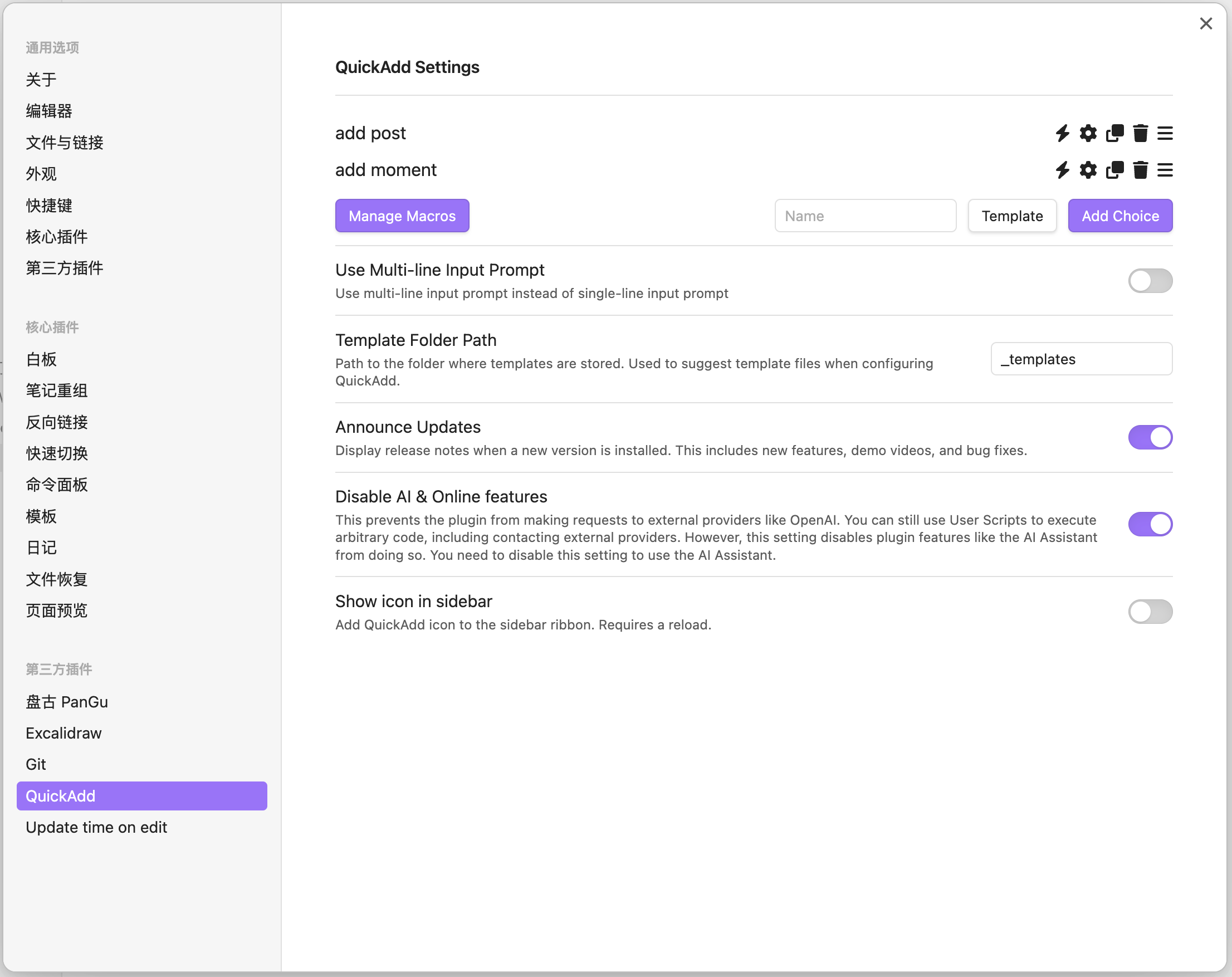 - 设置 QuickAdd 选项